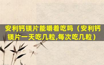 安利钙镁片是一种补充钙和镁的保健品,通常建议按照产品说明书或医生的建议来服用。关于是否可以嚼着吃,一般来说,如果产品说明书没有特别指出需要整片吞服,那么嚼着吃也是可以的。嚼碎后服用可能会使身体更快地吸收其中的成分。