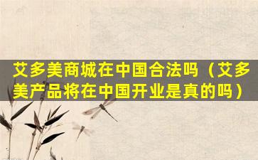 截至我的知识更新日期(2023年),艾多美(Amway)是一家全球知名的直销公司,其产品包括营养补充品、个人护理品、家居清洁用品等。艾多美在中国是合法运营的,它在中国设有分支机构,并且遵循中国的法律法规进行经营。