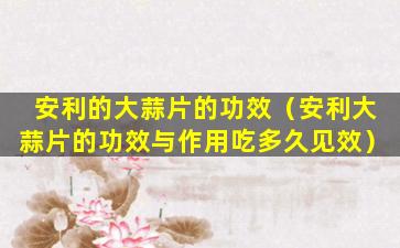 请注意,以上信息是基于一般的大蒜补充品,并非特指安利品牌的产品。安利大蒜片的具体成分、剂量和使用方法应参照该产品的官方说明书或咨询安利的专业销售代表。产品的功效和安全性可能会因个体差异而有所不同。