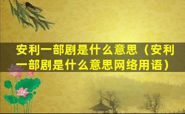 "安利一部剧"是网络用语,源自于中文网络社区,尤其是弹幕视频网站和社交媒体。"安利"一词在这里是动词,源自英文单词"recommend"的谐音,意为推荐或介绍。所以,“安利一部剧”就是指推荐或介绍一部电视剧、网络剧或任何形式的影视作品给他人。