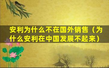 如果您听说“安利为什么不在国外销售”,这可能是一个误解或者信息不准确。实际上,安利是一个国际化的公司,它的业务遍布全球。安利通过其直销模式,允许个人成为独立经销商,销售安利的产品,并可能通过建立自己的销售网络来获得收入。