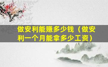 安利的收入取决于多个因素,包括个人的销售能力、招募新代表的能力、所在地区的销售情况、市场竞争状况以及个人的努力程度等。因此,很难给出一个具体的数字来回答“做安利能赚多少钱一个月”。