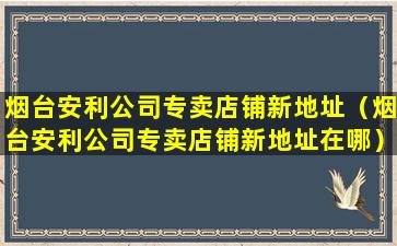 截至我的知识更新日期(2023年),安利(Amway)是一家全球知名的直销公司,提供各种健康、美容和个人护理产品。如果您想了解烟台安利公司的专卖店铺新地址,建议您直接访问安利中国的官方网站或联系安利客服获取最新信息。