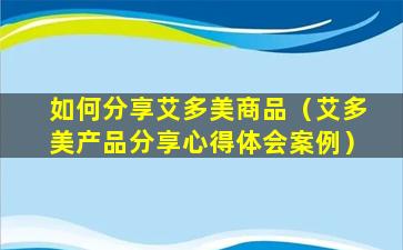 艾多美(Amway)是一家全球性的直销公司,主要销售健康、美容和个人护理产品。如果你想分享艾多美给其他人,以下是一些步骤和建议: