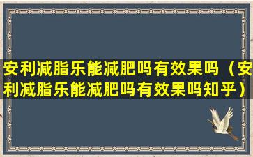 关于安利减脂乐是否有效,这取决于多种因素: