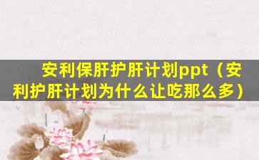 安利(Amway)是一家全球知名的直销公司,提供多种健康、美容和个人护理产品。关于“安利保肝护肝计划ppt”,这可能是指安利公司或其销售代表为了推广其保肝护肝产品而制作的一份演示文稿。