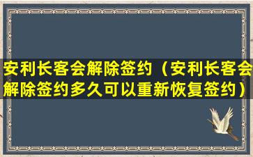 安利(Amway)是一家全球性的直销公司,其业务模式涉及个人与公司之间的签约关系。如果你提到的“长客会”是指安利的一种会员或经销商制度,那么解除签约后重新恢复签约的具体时间要求可能会根据安利的政策和当地法律法规有所不同。