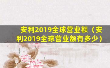 不过,根据一些新闻报道和安利公司发布的信息,安利在2019年的全球营业额大约为84亿美元。这个数字可能会随着更多信息的披露而有所变化,因此建议查阅最新的官方声明或新闻报道以获取最准确的数据。