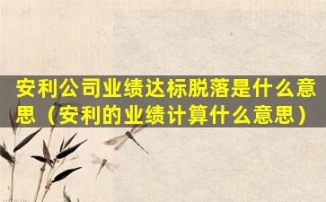 "安利公司业绩达标脱落"这个表述可能是在讨论安利公司(Amway)的营销人员或分销商的业绩情况。在安利或其他类似的直销公司中,营销人员通常需要达到一定的业绩标准才能维持其销售等级或获得某些奖励。如果一个营销人员未能达到这些标准,他们可能会“脱落”,这意味着他们失去了某些特权或等级,或者可能完全失去了作为公司营销人员的资格。