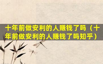 关于“十年前做安利的人赚钱了吗”这个问题,由于我无法访问知乎或其他社交媒体平台的内容,因此无法提供具体的个人案例或用户讨论。但我可以提供一些一般性的信息。