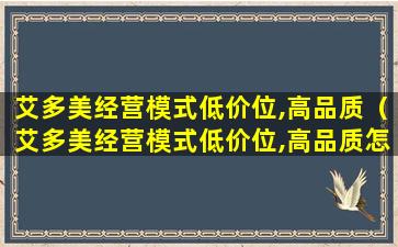艾多美(Amway)是一家全球性的直销公司,其经营模式通常被描述为通过独立分销商网络销售产品。艾多美强调其产品的高品质和相对合理的价格,这是其市场策略的一部分。关于“低价位”这一说法,需要根据具体产品和市场情况来评估。
