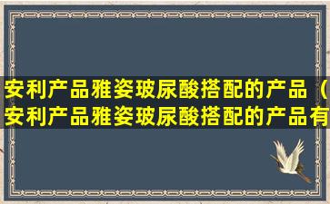 如果您想了解雅姿玻尿酸搭配的产品,建议直接访问安利官方网站或联系安利的销售代表,以获取最准确和最新的产品信息。通常,为了达到最佳的护肤效果,品牌会推荐一系列相互搭配使用的产品,这些产品可能包括清洁、爽肤、精华、面霜、眼霜等,以形成完整的护肤程序。