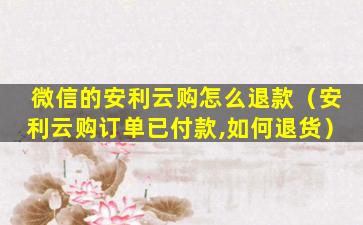 微信的安利云购是安利公司推出的一种在线购物平台,用户可以通过微信小程序进行商品的购买。如果您在安利云购中购买了商品并需要退款,可以按照以下步骤操作: