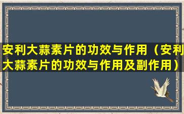安利大蒜素片是一种含有大蒜提取物的保健品,它通常被宣称具有多种健康益处。以下是一些可能的功效与作用,以及潜在的副作用: