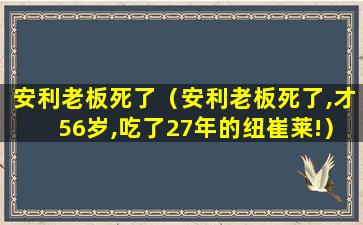 关于“安利老板死了”的说法,目前没有官方或可靠的消息来源证实这一信息。安利(Amway)是一家全球知名的直销公司,其创始人和高管的健康状况通常会受到媒体和公众的关注。如果有关安利高层的任何重要消息,通常会通过官方渠道或主流媒体进行报道。
