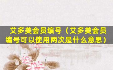 如果您是艾多美的会员,并且想要了解您的会员编号是否可以重复使用,以及如何使用,建议您直接咨询艾多美的客服或者查看最新的会员政策和活动规则。通常,这些信息会在艾多美的官方网站、会员手册或者通过电子邮件通知会员。