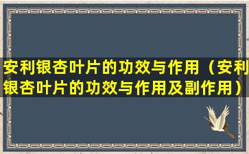 安利(Amway)是一家国际知名的直销公司,其产品线涵盖了营养补充品、个人护理品、家居用品等多个领域。安利银杏叶片是该公司生产的一种营养补充品,主要成分是银杏叶提取物。银杏叶提取物含有多种活性成分,如黄酮类化合物和萜内酯,这些成分被认为对人体健康有益。
