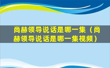 如果您是在寻找某个具体的视频或节目中的片段,您可以尝试使用视频平台的搜索功能,输入相关的关键词,如“尚赫领导说话”,来查找可能包含这一场景的集数。如果这是一个流行的节目或电影,您也可以查看相关的剧情简介或观众评论,这些信息可能会提到您感兴趣的场景。
