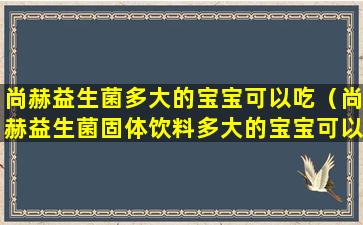 尚赫益生菌固体饮料是一种含有益生菌的食品补充剂,旨在帮助调节肠道菌群平衡。关于多大的宝宝可以食用尚赫益生菌固体饮料,建议遵循以下指导原则: