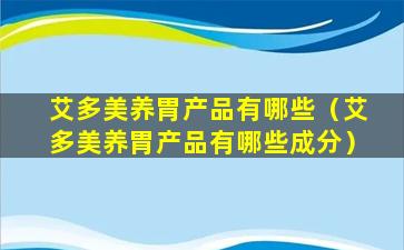 艾多美(AIM)是一个健康产品品牌,它提供多种营养补充品和健康产品。关于养胃产品,艾多美可能提供一些有助于胃部健康的产品,例如含有益生菌、消化酶、胃粘膜保护成分的产品等。具体的产品信息需要通过官方渠道或授权经销商来获取,因为产品线可能会更新,且不同地区可能有不同的产品供应。