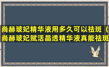 尚赫玻妃精华液是一款护肤产品,它含有多种成分,旨在帮助改善肌肤状况,包括减少色斑。关于使用尚赫玻妃精华液祛斑的具体时间,这取决于多种因素,包括个人的肤质、色斑的类型和程度、以及使用产品的频率和方法。