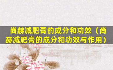 尚赫减肥膏是一种外用减肥产品,其主要成分和功效通常会在产品说明书或官方宣传资料中详细列出。由于我无法访问最新的产品信息,以下是一些常见的减肥膏成分及其可能的作用: