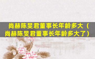 截至我所知的信息,尚赫公司的董事长陈旻君的具体年龄并未公开详细披露。如果您需要了解陈旻君董事长的最新信息,建议直接查阅尚赫公司的官方公告或联系公司获取最新资讯。