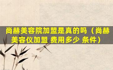尚赫美容院是一个在中国有一定知名度的美容连锁品牌。关于“尚赫美容院加盟”是否真实,这通常取决于该品牌的官方政策和加盟信息。如果您想了解尚赫美容院的加盟信息,建议您直接访问尚赫美容院的官方网站或联系其官方客服,获取最准确和官方的加盟信息。
