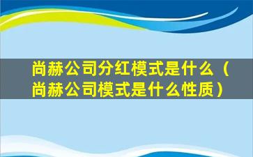 请注意,具体的分红模式可能会因公司的具体情况而异,包括公司的经营状况、财务状况、股东结构等因素。因此,如果您需要了解尚赫公司具体的分红模式,建议直接查阅该公司的官方公告或联系公司获取最新的分红政策信息。同时,确保获取的信息是最新和准确的,以符合中国的法律法规和社会主义核心价值观。