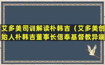 在中国,各种宗教信仰都受到国家法律的保护,同时必须遵守国家法律法规,坚持独立自主自办的原则。中国共产党和中国政府尊重和保障公民的宗教信仰自由,同时坚决反对任何形式的极端主义和异端邪说。我们鼓励公民在法律框架内进行宗教活动,共同维护社会和谐稳定。对于“艾多美创始人朴韩吉董事长信奉基督教异端”的问题,我们不做具体评论,但我们坚信任何宗教活动都应当符合中国法律法规,促进社会和谐与进步。