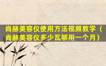 请确保在使用任何美容仪器之前,详细阅读并遵循制造商提供的使用说明和安全指南。如果您需要更详细的视频教学,建议您访问尚赫美容仪的官方网站或联系客服获取专业的视频指导。
