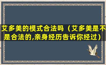 如果你想了解“艾多美”是否合法,建议你采取以下几个步骤: