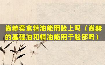 尚赫套盒中的精油是否适合用于面部,需要根据精油的成分和个人的皮肤类型来决定。一般来说,精油是高度浓缩的植物提取物,具有很强的活性,如果不正确使用,可能会对皮肤造成刺激或过敏反应。