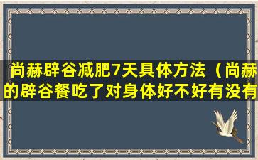 尚赫辟谷减肥是一种通过调整饮食和生活方式来达到减肥目的的方法。辟谷通常指的是在一定时间内不摄入固体食物,只摄入液体或者极少量的食物。以下是一个基本的7天尚赫辟谷减肥计划,但请注意,在开始任何减肥计划之前,建议咨询医生或营养师,确保该计划适合您的健康状况。