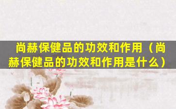 尚赫保健品是一个品牌,其产品种类繁多,包括但不限于营养补充品、保健食品等。这些产品的功效和作用通常旨在帮助人们补充营养、增强体质、改善健康状况等。具体产品的功效和作用需要根据产品说明书和相关科学研究来确定。