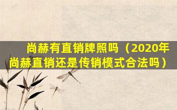 截至我的知识更新日期(2023年),关于“尚赫”是否拥有直销牌照的信息,我无法提供确切的答案。在中国,直销牌照是由中国国家市场监督管理总局颁发的,用于规范直销企业的经营活动。如果“尚赫”是一家在中国境内从事直销业务的公司,它应当持有相应的直销牌照。