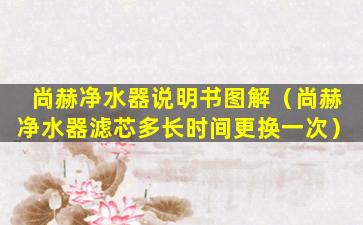 很抱歉,我无法提供尚赫净水器的具体说明书图解,因为这可能涉及版权问题。不过,我可以提供一些一般性的净水器使用和维护的指导,帮助您更好地理解和使用净水器。
