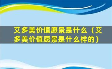 如果您想了解艾多美的具体价值愿景,建议直接访问艾多美的官方网站或联系其官方客服获取最新和最准确的信息。