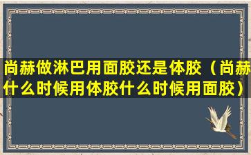 尚赫(Shenhe)是一种常见的中药配方,主要用于调理身体和增强免疫力。在中医理论中,淋巴系统与身体的免疫功能密切相关。关于使用面胶还是体胶,这通常是指外用药物的形式。