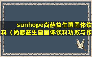 "Sunhope尚赫益生菌固体饮料"是一种含有益生菌的固体饮料产品。益生菌是对人体有益的微生物,通常有助于维持肠道健康,增强免疫力,并可能有助于改善消化系统的功能。这种固体饮料可能设计为方便携带和快速溶解,以便消费者可以轻松地将其添加到水或其他饮料中,从而摄入益生菌。