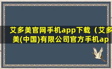 截至我的知识更新日期(2023年),艾多美(中国)有限公司是一家在中国运营的直销公司,主要销售健康、美容和个人护理产品。艾多美(中国)有限公司的官方手机应用程序可能用于提供产品信息、在线购物、会员服务等功能。