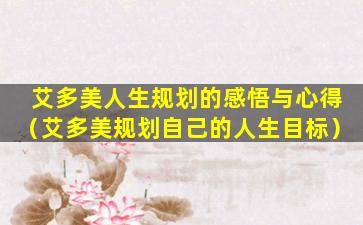 艾多美人生规划是一种个人发展策略,它强调通过设定目标、规划路径和持续努力来实现个人成长和成功。以下是一些关于艾多美人生规划的感悟与心得:
