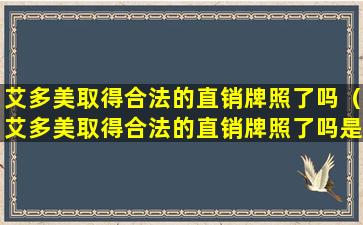 截至我的知识更新日期(2023年),艾多美(Amway)是一家全球知名的直销公司,它在中国拥有合法的直销牌照。艾多美在中国是由安利(中国)日用品有限公司运营,该公司是安利公司在中国的全资子公司。安利(中国)日用品有限公司在中国获得了直销经营许可证,可以在法律允许的范围内开展直销业务。