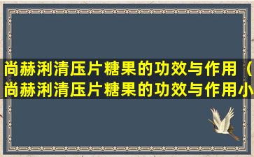尚赫浰清压片糖果是一种含有多种成分的保健品,其主要功效可能包括清热解毒、润喉止咳等。关于这类产品的具体成分和功效,需要查看产品说明书或咨询生产厂家以获得准确信息。
