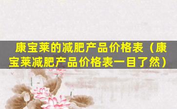 很抱歉,我无法提供具体的产品价格表,因为价格可能会因地区、销售渠道、促销活动等因素而有所不同。康宝莱(Herbalife)是一家国际知名的营养品公司,提供多种健康和减肥产品。如果您想了解康宝莱减肥产品的价格,建议您直接访问康宝莱的官方网站或联系当地的康宝莱经销商获取最准确的信息。
