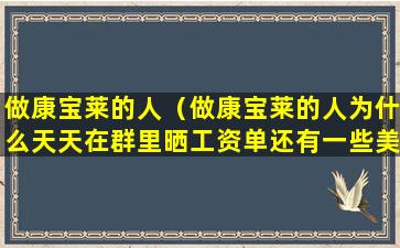 康宝莱(Herbalife)是一家全球性的营养品公司,主要销售体重管理和营养补充产品。如果您所说的“做康宝莱的人”指的是康宝莱的员工或者其独立分销商,那么他们可能从事以下几种工作: