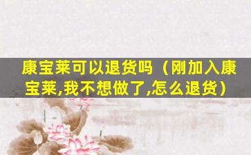 如果您刚刚加入了康宝莱(Herbalife)并决定不想继续,您可能有权根据康宝莱的退货政策进行退货。康宝莱通常为其会员提供一定的退货保障,但这可能会根据您所在的国家或地区的法律以及康宝莱的具体政策而有所不同。