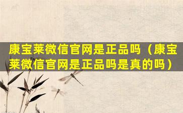 关于“康宝莱微信官网”是否为正品,这里需要明确几点: