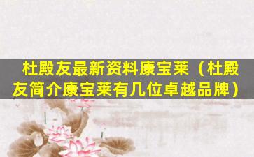 关于“杜殿友”和“康宝莱”的信息,目前没有公开的详细资料。康宝莱是一家全球知名的营养品公司,提供各种健康和营养产品。如果您需要了解康宝莱公司的信息,可以访问其官方网站或查阅相关新闻报道。对于个人“杜殿友”的信息,由于涉及个人隐私,建议通过正规渠道获取相关信息。在讨论任何个人或公司时,应确保遵守相关法律法规,尊重个人隐私和商业机密。