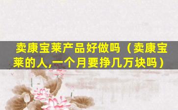 康宝莱(Herbalife)是一家全球性的营养补充品公司,以直销模式销售其产品。关于“卖康宝莱产品好做吗”的问题,这取决于多种因素,包括个人的销售技巧、市场情况、产品需求、竞争状况以及个人的努力程度等。以下是一些可能影响销售康宝莱产品难易程度的因素: